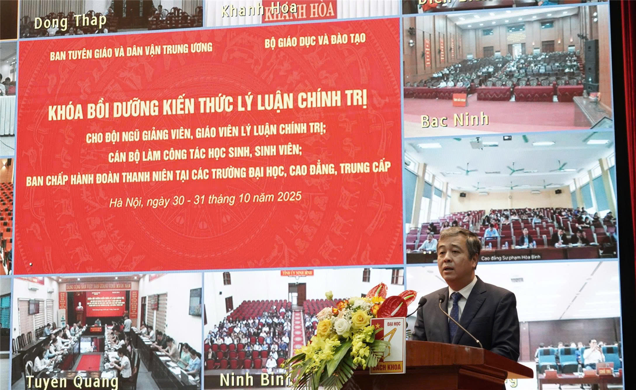 Từ ngày 30/10/2025 đến ngày 31/10/2025, các giảng viên Khoa Lý luận chính trị tham dự Hội nghị tập huấn do Ban Tuyên giáo và Dân vận Trung ương phối hợp với Bộ Giáo dục và Đào tạo tổ chức hội nghị trực tuyến toàn quốc Khoá bồi dưỡng kiến thức lý luận chính trị cho đội ngũ giảng viên, giảng viên giảng dạy các môn lý luận chính trị, cán bộ làm công tác học sinh, sinh viên và Ban Chấp hành Đoàn thanh niên tại các cơ sở giáo dục đại học, cao đẳng, trung cấp trong hệ thống giáo dục quốc dân.